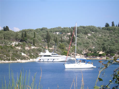 Impressive yachts, such as this one, can be seen moored at Gaios harbour.