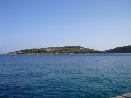 Looking out to sea from the mouth of Gaios harbour, you can see the Greek mainland.