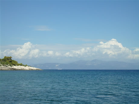 This photo of the coastline near Loggos was taken on board "Santa II", the hydrofoil ferry that operates between Paxos and Corfu.