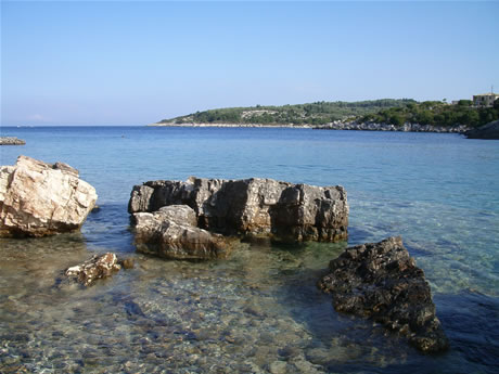 Mongonisi, at the south end of the island, has a sandy beach. Many luxurious yachts moor in the cove.
