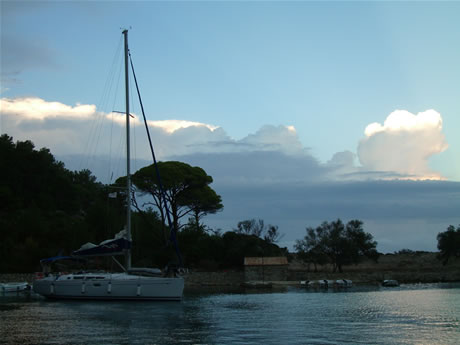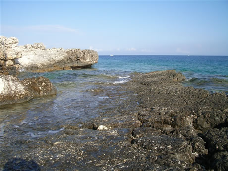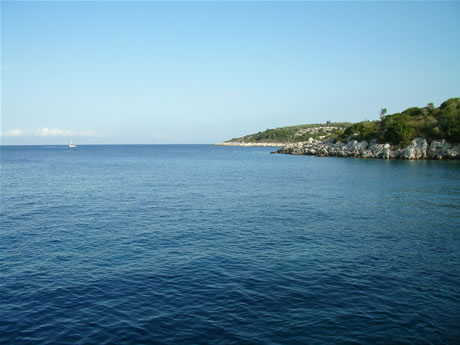 Looking out to sea from the mouth of Gaios harbour, you can see the Greek mainland.
