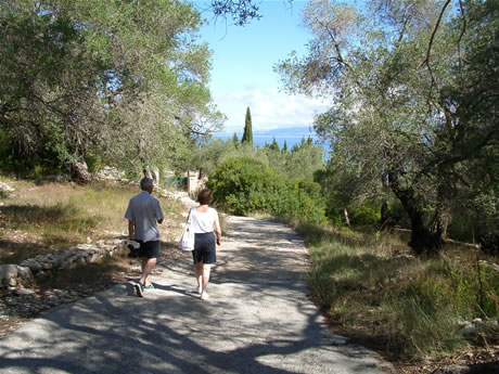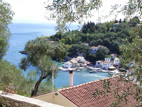 A view of the harbour at Loggos, taken from one of the many pathways that crisscross the island.