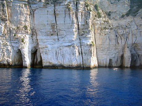 The Blue Caves on the west coast of Paxos can be explored by boat.